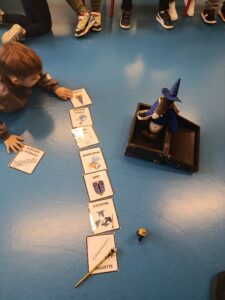 Quand l’élève ne se rappelle plus de tout, les camarades peuvent lui donner des indices : c’est un objet pointu que le magicien pose sur sa tête !