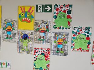 Plein de monstres rigolos ou effrayants ont décoré les murs du couloir de la maternelle.