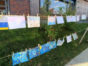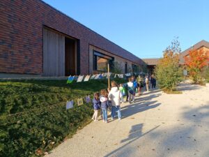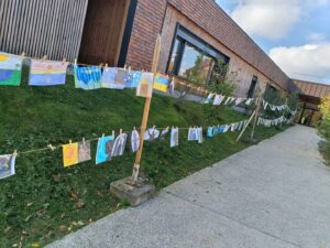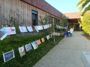 Le jeudi avant les vacances d’automne, toutes les classes ont participé à l’exposition de la grande lessive dont le thème cet automne était : « Nuit et jour, réfléchir les lumières ! ».