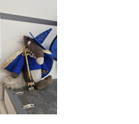 Cette année, notre mascotte Loup est arrivée avec une belle tenue bleue parsemée d’étoiles jaunes et une baguette magique !