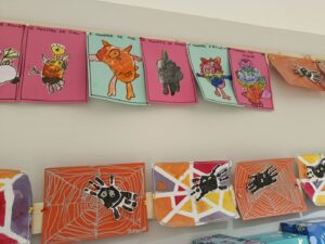 Le vendredi de la rentrée fût festif ! La classe s’était transformée en réunion de petites sorcières, squelettes, fantômes, etc..