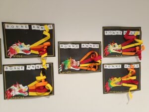 Nous avons réalisé plusieurs production sur le thème des dragons et lu de nombreux livres sur les dragons, des châteaux forts, des chevaliers,